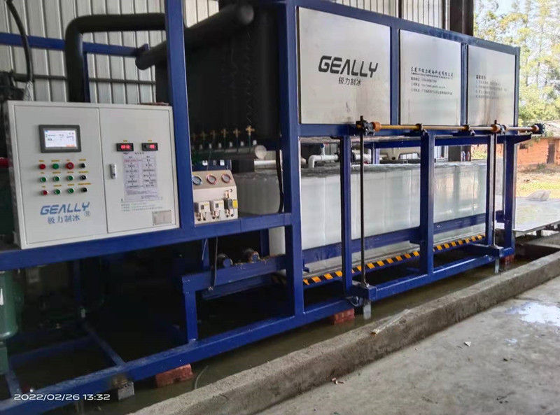 极力制冷日产8吨直冷式块冰机发货云南省楚雄,冰块50公斤,带推冰机